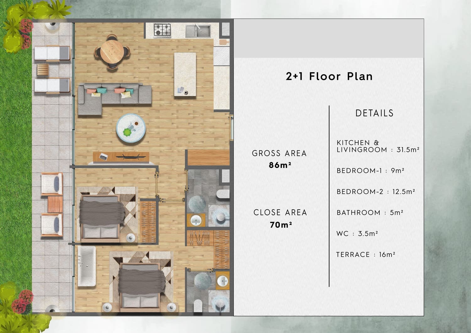 Type B 1+1 apartments & 2+1 loft penthouses