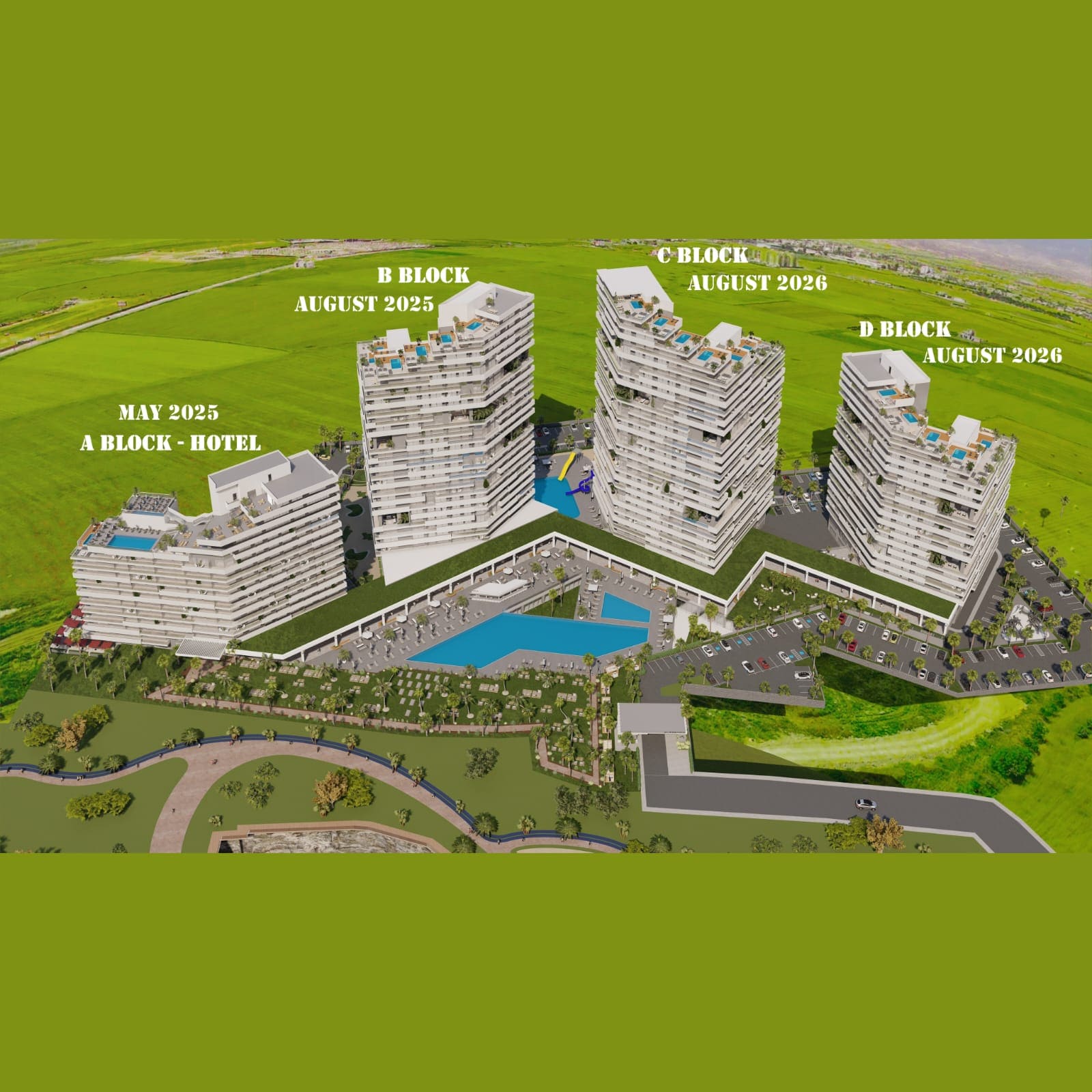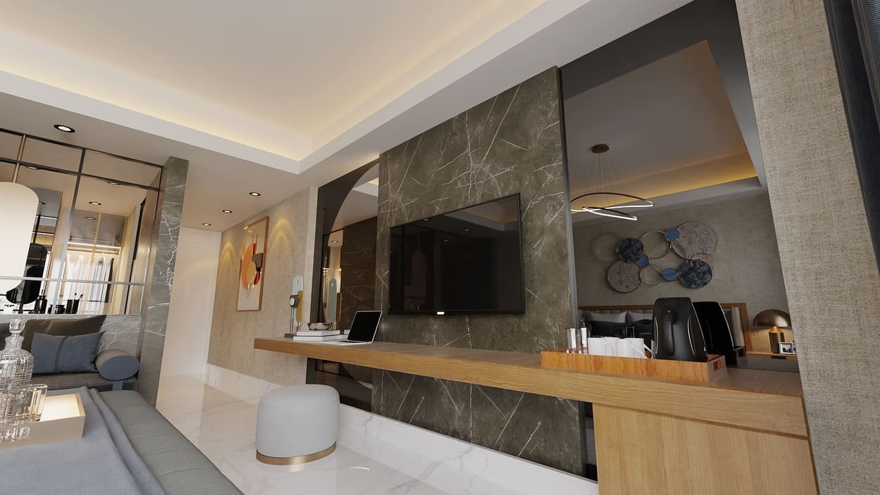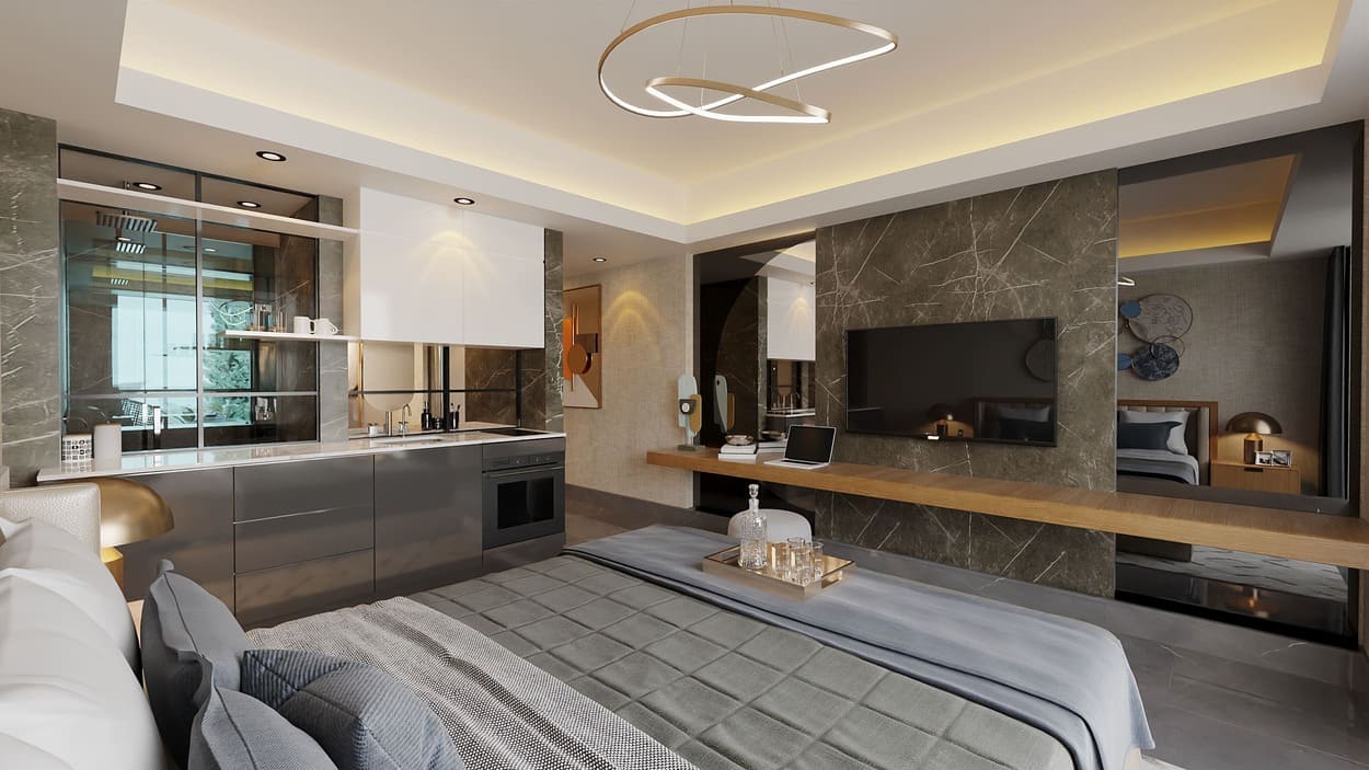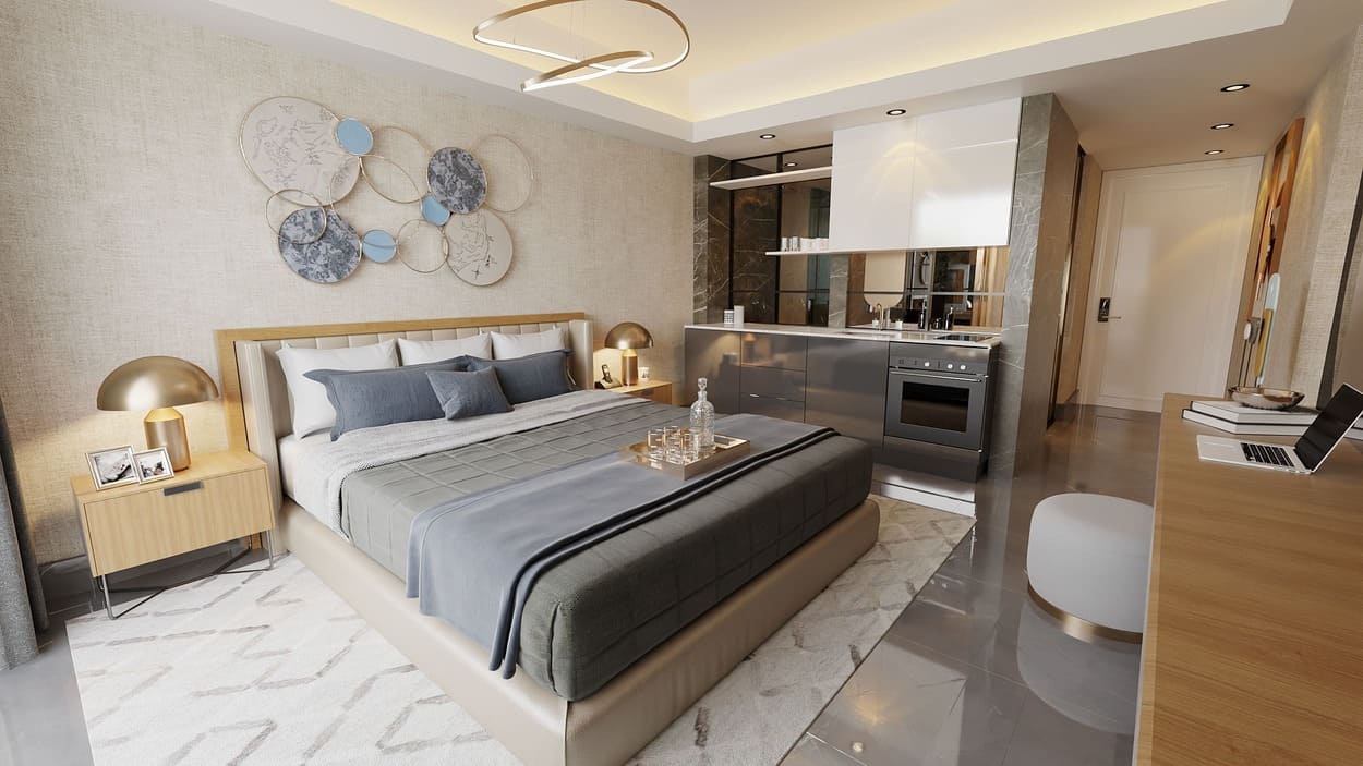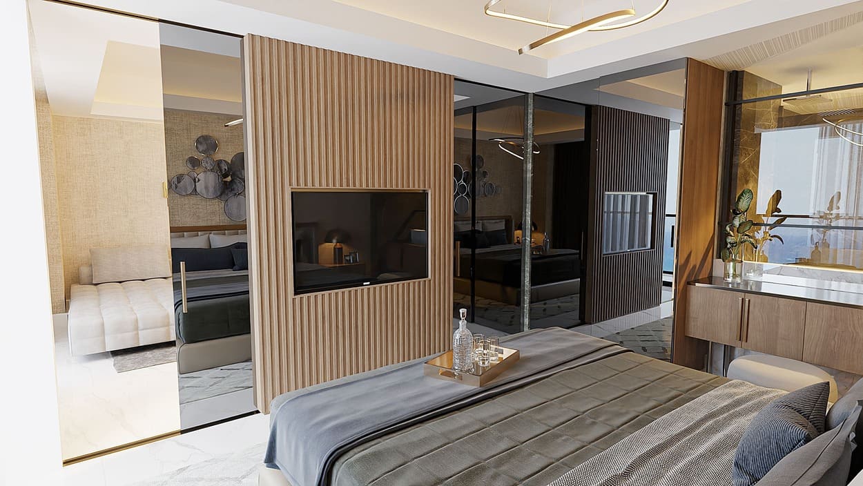 Luxury Resort-Residence consists of four blocks: block A is a luxury hotel and blocks B, C, D are residential units. The project includes a huge 4000m² Infinity pool and 1300m² indoor and outdoor pools. Project scope is 686 apartments: studio, 1+1, 2+1, 3+1, 4+1 and 5+1 luxury penthouses. The space has been designed in such way that every detail has been paid attention to, and access to all facilities is also possible for people with disabilities.
