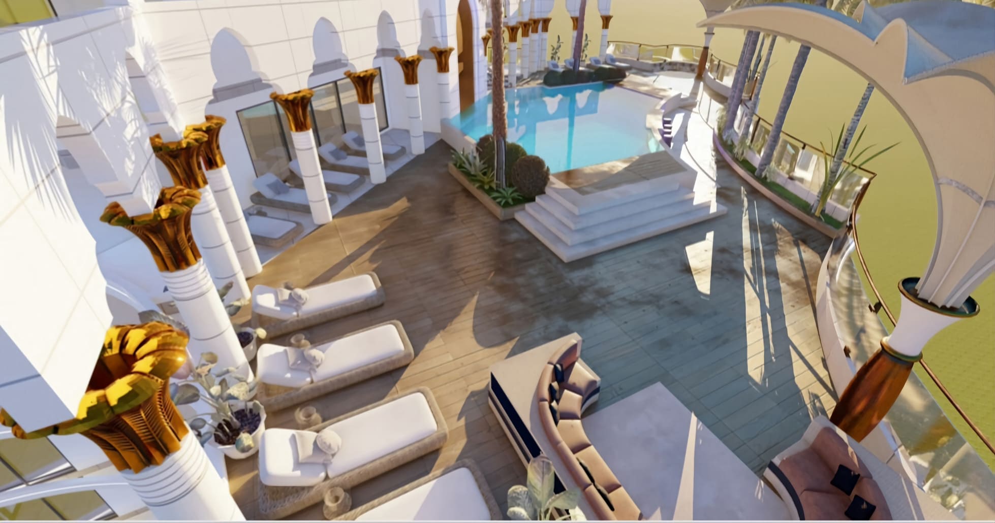 Private Pools and Lounge Areas for Each Block