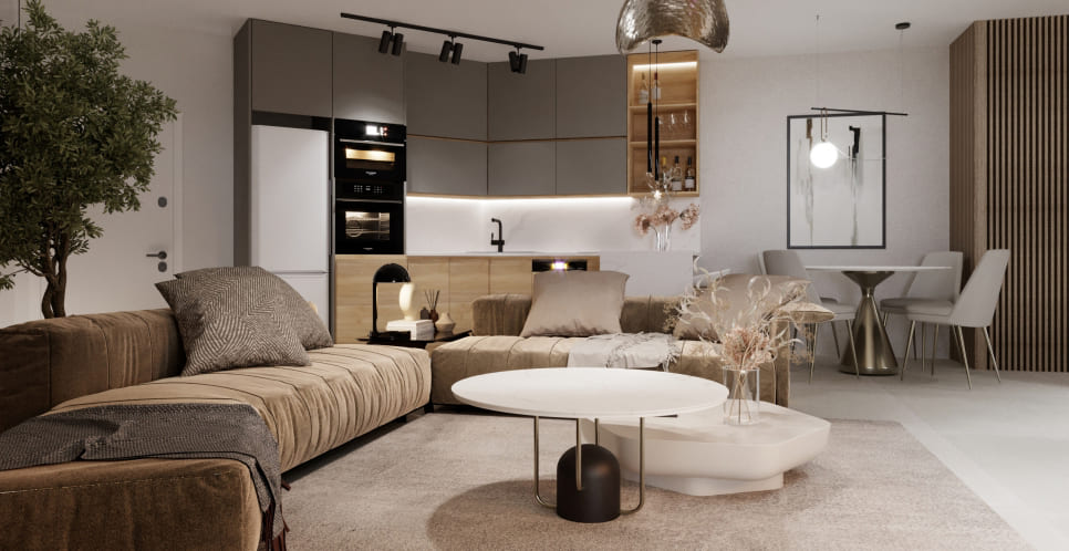 This project features a range of luxurious amenities, including a family and leisure pool, indoor pool, and kids’ pool. Each block also has its own private pool and lounge area, perfect for entertaining guests or relaxing with family. We’ve thought of everything when it comes to your comfort and convenience, from underfloor heating in the bathrooms to a generator for outdoor facilities and elevators.